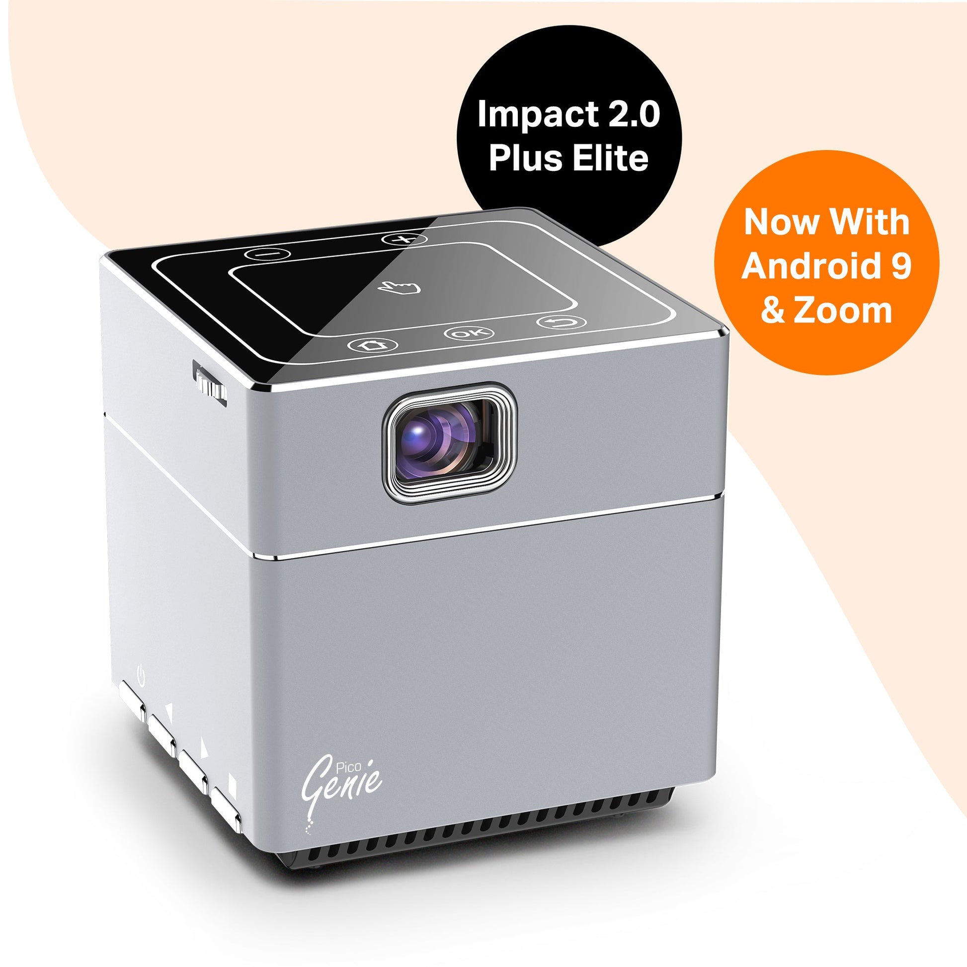 The Pico Genie Impact 2.0 Plus Elite now with Android 9, Zoom, 4K compatibility and 3D Support is the latest addition to Pico Genie's line of portable projectors.
